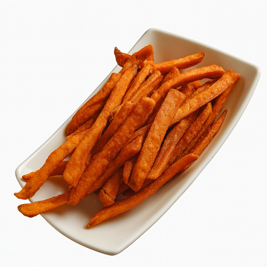 Camote crujiente estilo francés, con un sabor dulce y textura dorada. Porción individual de 150 g, ideal como acompañamiento diferente y delicioso.