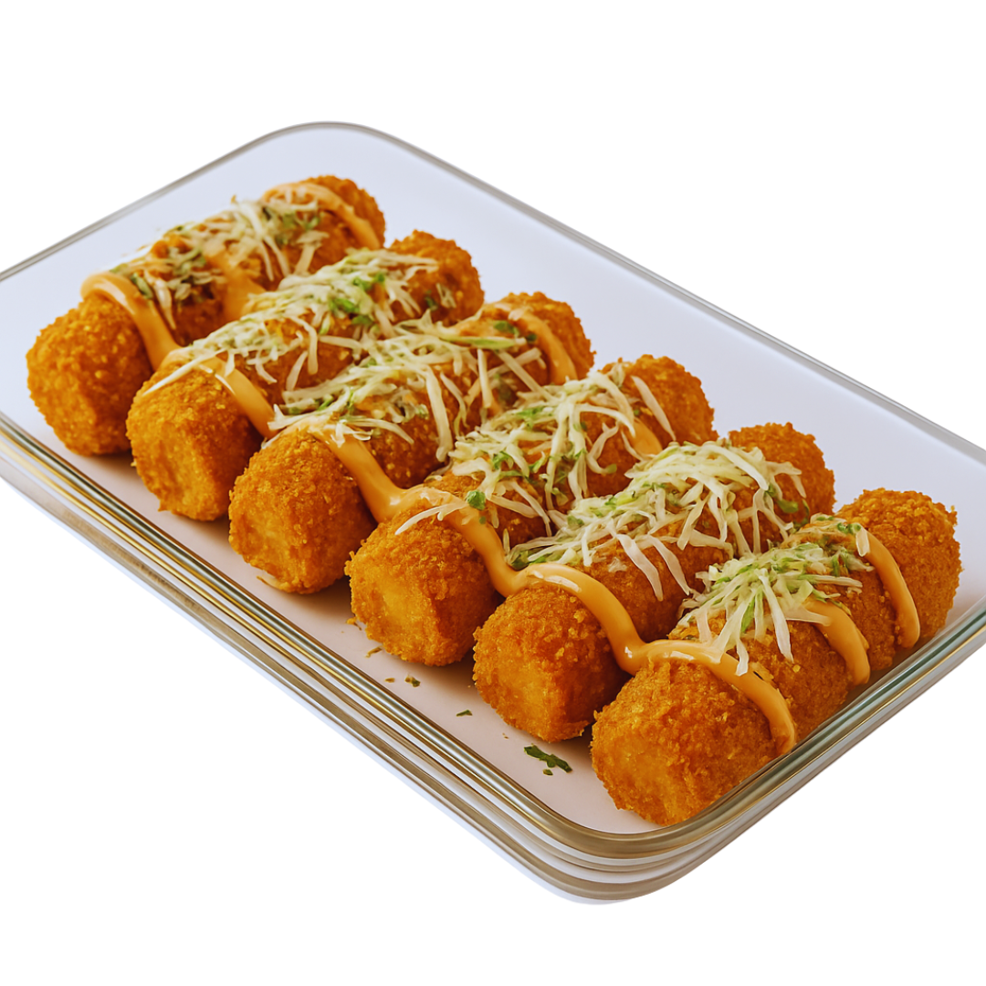 6 piezas de elotitos empanizados, servidos con queso parmesano y mayonesa de chipotle. Crujientes por fuera y suaves por dentro, perfectos como snack o entrada.